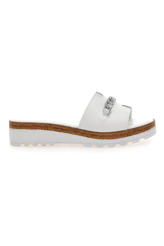 Ciabatte azzurre effetto jeans con dettagli multicolor e fibbie Dame Rose APY66