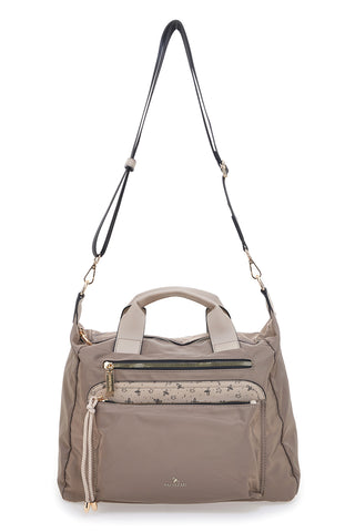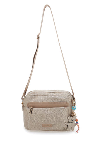 Borsa taupe con charm orsetto e zip dorate Naj-Oleari 61329/BOBA13