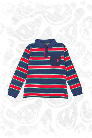 Polo a Maniche Lunghe a Righe Blu e Rosse PITT KIDS 6030