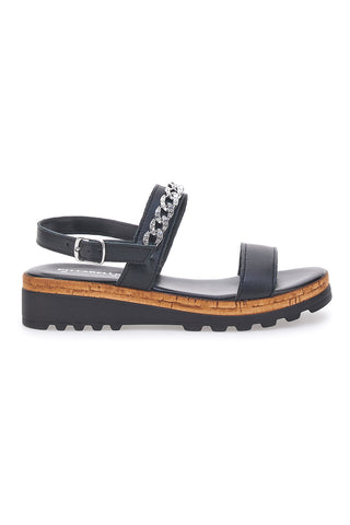 Sandali Neri Con Tomaia in Pelle e Zeppa PITTARELLO 34723002