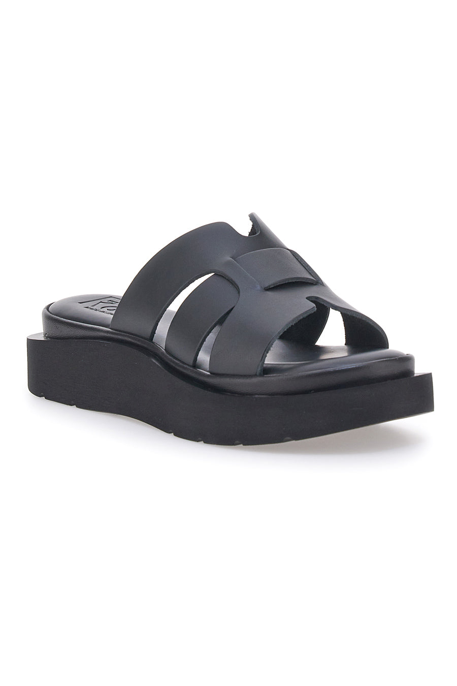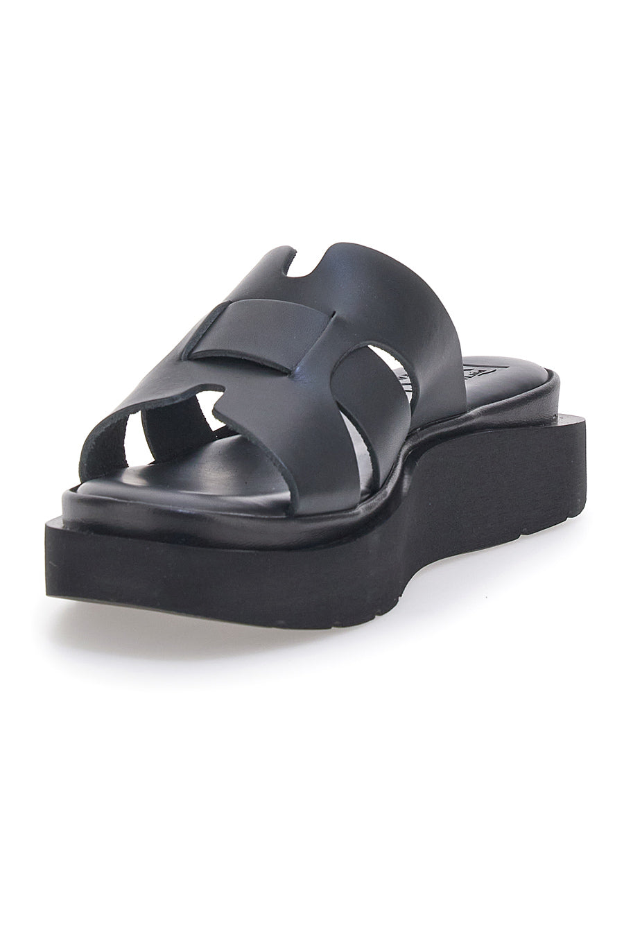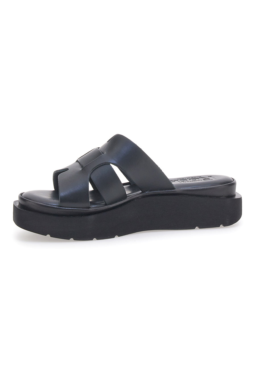 Schwarze offene Sandalen aus echtem Leder mit Plateau PITTARELLO ROCK 5983