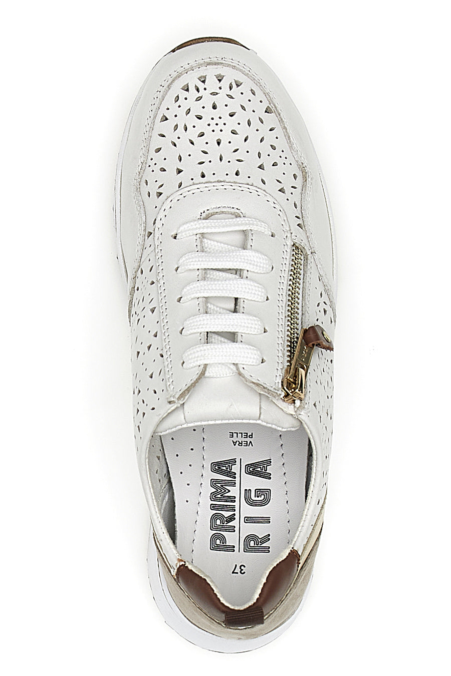 Weiße Sneakers mit perforiertem Lederobermaterial PRIMA RIGA 21464GLAM