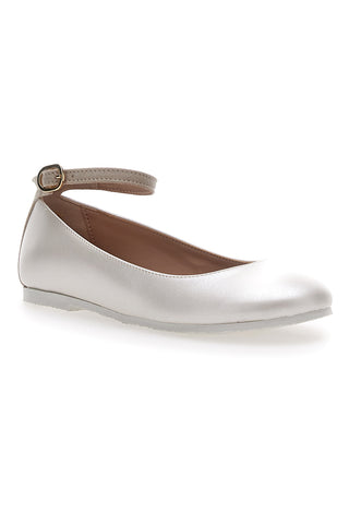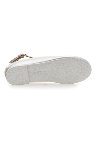 Per le giornate speciali, in stile bon ton, abbina al tuo splendido vestitino le ballerine bianco perlato con cinturino alla caviglia per essere raffinate ed eleganti già da bambine.