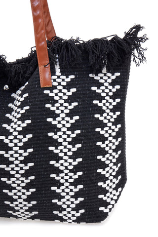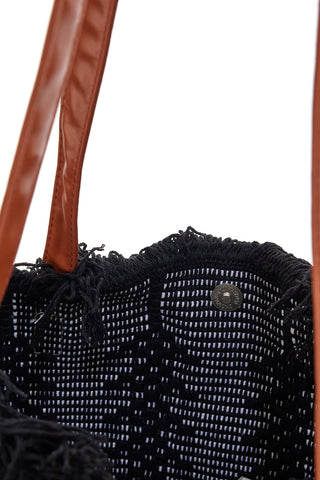 Una borsa con frange nera: realizzata con sapienti intrecci colorati, può essere portata a mano o a spalla, a seconda del tipo di look indossato, da mattina a sera. Lo stile sarà assicurato in ogni occasione!