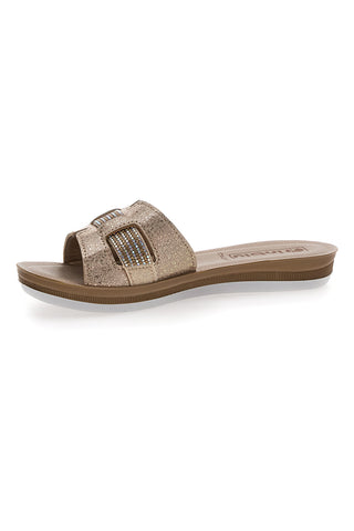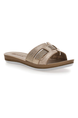 Ciabatta con fascia centrale ricoperta di strass per una calzata comoda e luminosa. La suola è strutturata, ma allo stesso tempo flessibile e leggera per assicurarti il massimo del comfort. Rendi eleganti anche gli outfit più casual con le tue inblu!