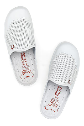 Ai fornelli la comodità è essenziale, affronta la tua giornata in cucina con le ciabatte in pelle Mr Chef. Punta arrotondata e sottopiede in Vera pelle traforata per una maggiore traspirabilità, suola alta in gomma. Per un benessere che dura tutto il giorno!