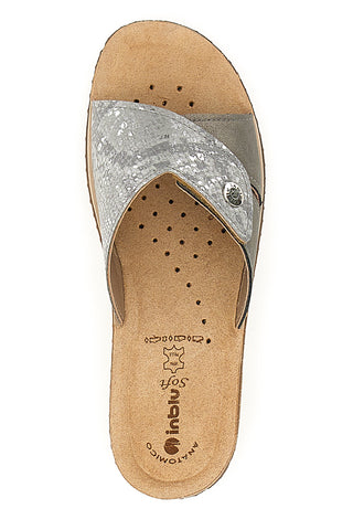 Scegli la comodità ed il confort in casa con le ciabatte da donna Inblu. Fascia regolabile con strappo, sottopiede anatomico in Vera Pelle.