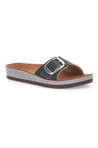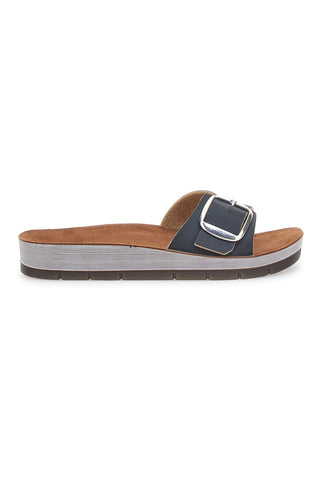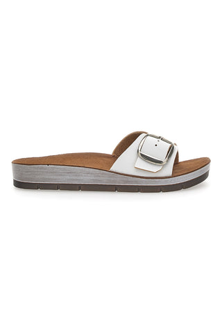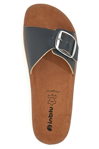 E' tempo di bella stagione e con le nuove ciabatte! Inblu propone un classico rivisitato in chiave moderna con questo maxi fascia con fibbia argento. Sottopiede morbido in Vera pelle.