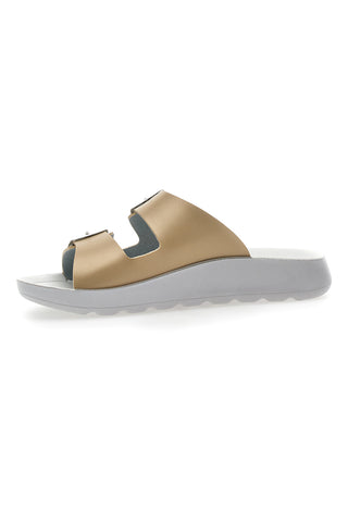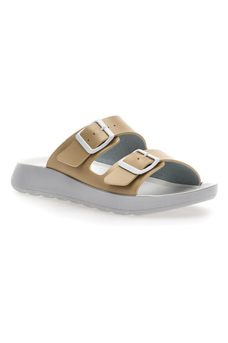 Le fasce metallizzate donano luce ad ogni passo. Osa con il look sportivo di queste ciabatte: abbinale a un maxi abito e goditi la passeggiata!
