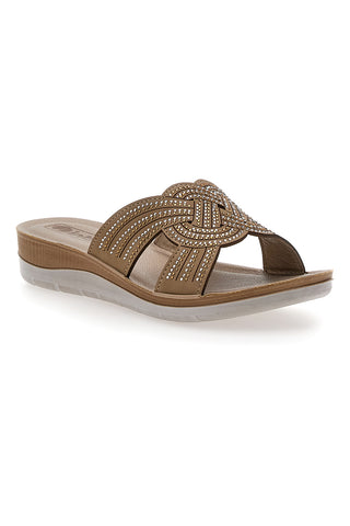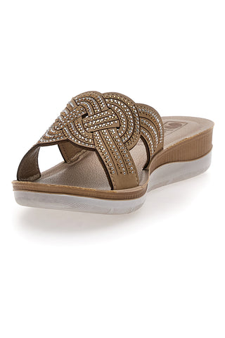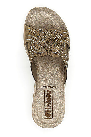 Suola leggerissima e plantare morbido imbottito. Comodissime, sì, ma anche scintillanti e originali grazie a questa decorazione a nodo tempestata di strass. Con le tue inblu ai piedi sarai la regina di casa, ma sono così eleganti che ti accompagneranno anche fuori!