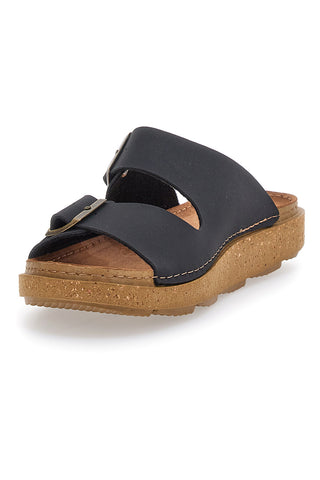 Ciabatte Nere Con Fibbie e Sottopiede in Pelle Inblu 16 Mt