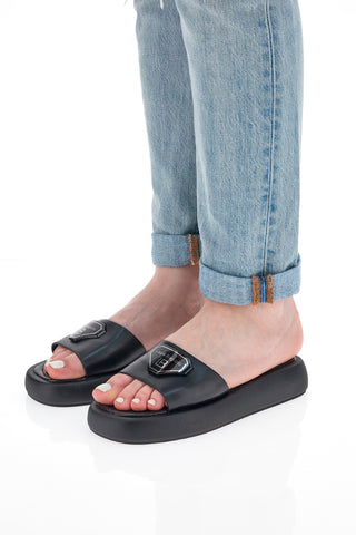 Ispirati agli anni Novanta, queste ciabatte in total black ti conquisteranno grazie ad una comoda suola in gomma e maxi-fascia che abbracciano il piede con stile. Perfetto per la città ed il tempo libero, queste ciabatte sono l'elemento chiave per comporre i tuoi outfit estivi più grintosi.