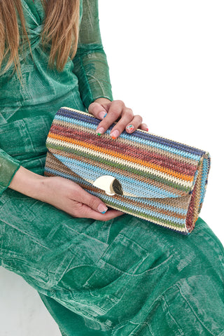 Leggerezza ed eleganza sono le parole chiave che descrivono la nuova pochette beige in raffia della nuova collezione primavera/estate. La forma rettangolare e la delicata chiusura a clip un accessorio dal fascino naturale e molto versatile. La raffia, un materiale intrecciato, conferisce un tocco boho-chic, ideale per le giornate soleggiate. Questa pochette si adatta perfettamente a un look con abito estivo leggero e comodo, magari con l'aggiunta di un sofisticato cappello in paglia. Questa pochette sarà una compagna perfetta per le tue avventure estive.