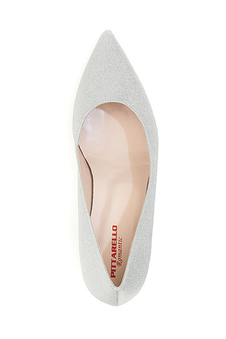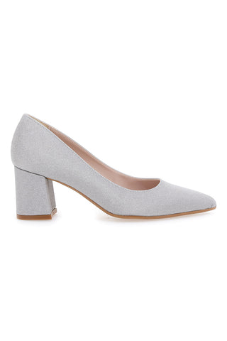 Queste décolleté a punta con tacco a tronchetto basso sono perfette per una sposa che desidera un'eleganza discreta e raffinata. Realizzate in un delicato colore argento, offrono un look classico e sofisticato, ideale per il grande giorno. Il tacco basso assicura comfort e stabilità, permettendo di ballare e muoversi con facilità. Il design semplice e pulito si sposa perfettamente con abiti da sposa eleganti e altri outfit formali. Con queste décolleté, ogni passo sarà un esempio di eleganza senza tempo, perfetto per il tuo matrimonio o altre occasioni speciali.