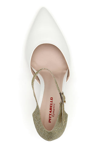 Indossa le Décolleté Pittarello Romantic, con tacco a rocchetto pieno di glitter dorati, punta affusolata e cinturino alla caviglia. E’ l’accessorio immancabile per l’outfit del tuo giorno più bello.