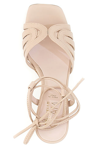 Raggiungi nuove vette di eleganza con i sandali con tacco della Nuova Collezione Primavera/Estate. Il tacco a rocchetto regala un tocco di femminilità slanciando contemporaneamente la silhouette, mentre i lacci alla caviglia alla caviglia assicura un sostegno in più al piede. Questi sandali sono perfetti con un abito lungo per serate speciali o con jeans e top per un look casual sofisticato.