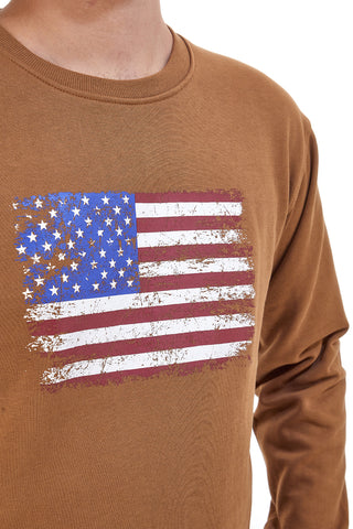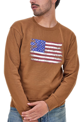 Felpa girocollo marrone con stampa frontale US GOLF CLUB 1291