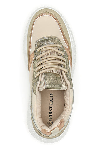Sneakers Beige con Inserti Metallizzati First Lady 012 da Donna