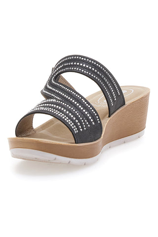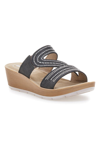 Ciabatte Nere con Zeppa e Strass Inblu 23RN