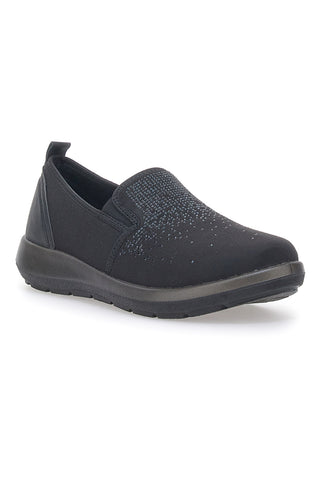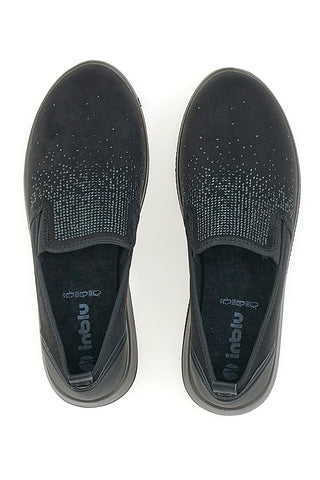 Ti innamorerai dei mocassini di Inblu, le scarpe comode come pantofole. Questo modello con tomaia in tessuto abbina alla comodità delle pantofole Inblu un tocco glamour grazie agli strass applicati nella parte superiore.