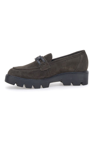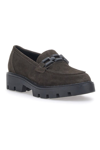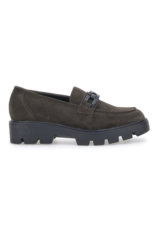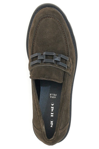 I mocassini MIO TEMPO con tomaia in pelle scamosciata e catenina applicata nella parte superiore sono l'accessorio perfetto per completare i tuoi look nella stagione fredda. Abbinali ad una gonna a balze o ad un paio di jeans, sono comodi e versatili.