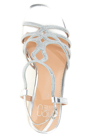 Sandali argento con tacco e listini intrecciati MON DIEU 643