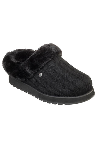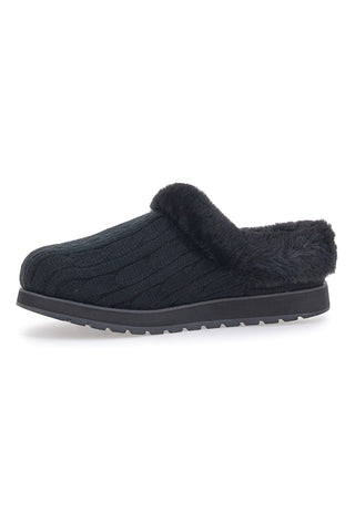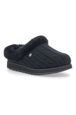 Rimani comodo con uno stile classico con i BOBS di Skechers Keepsakes - Ice Angel. Questa comoda pantofola slip-on presenta una morbida tomaia in tessuto lavorato a maglia con fodera in pelliccia sintetica e un plantare imbottito Skechers Memory Foam.