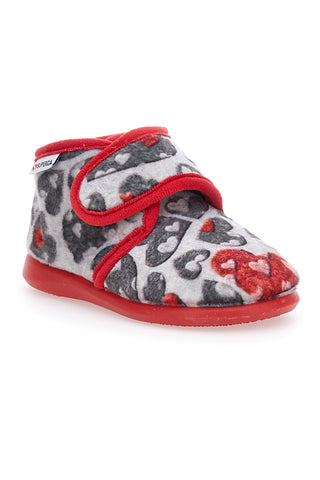 Calde e comode le pantofole da bambina SUPERGA in fantasia a cuoricini e profilo rosso, terranno il piede caldo nelle giornate fredde in casa. Chiusura a trappo e suola in gomma.