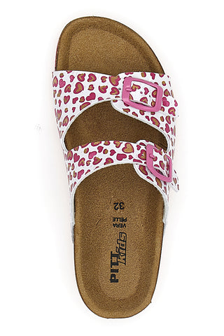 Ciabatte Bianche con Cuori Rosa e Doppia Fibbia PITT KIDS 40021CUV