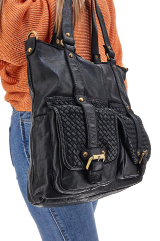 Borsa a Spalla Nera In Vera Pelle Route 66 61862/OLDR