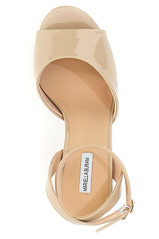 Sandalo raffinato da indossare per le cerimonie o per completare i tuoi look da sera. Realizzato con tomaia in effetto vernice, sottopiede soft donerà ai tuoi piedi benessere e tacco con zeppa di ben 12,5 centimetri.