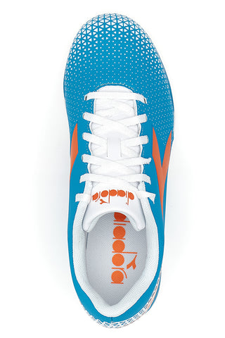 Scarpe da Calcio con Tacchetti Fissi Azzurre con Logo Arancione Diadora Pichichi 6 Md Jr