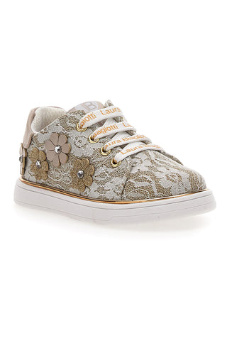 Eleganti e leggere le nuove sneakers in pizzo firmate Laura Biagiotti sono perfette per le domeniche in città. La chiusura stringata avvolgerà al meglio la scarpa senza paura di perderla, mentre la cerniera laterale permette di infilarle e sfilarle senza difficoltà, a prova di mani piccoline!