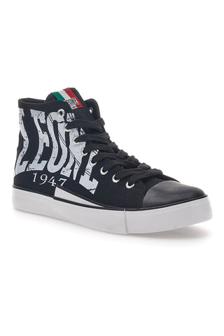 Sneakers Mid-Cut Nere e Bianche In Tela Leone 40