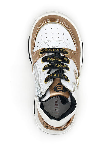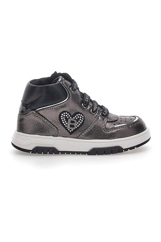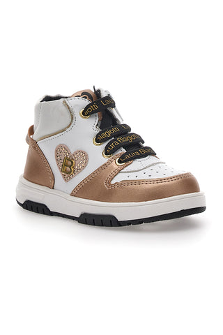 Le nuove sneakers dal taglio mid-cut Laura Biagiotti con tomaia bicolor, inserti effetto metallizzato e cuoricini con mini borchiette hanno un animo sporty-chic che si abbinerà perfettamente a quello della tua bimba. Falle indossare tutti i giorni per essere una diva!