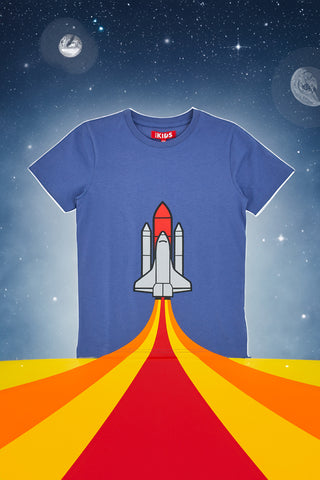 Per la bella stagione, scegli di far indossare al tuo bambino la fresca e morbida T-Shirt Pitt Kids di colore blu con shuttle stampato, perfetta per essere abbinata sia ai pantaloncini in tuta sia agli short in jeans! Completa l'outfit con un paio di sandali o di scarpine in tela.