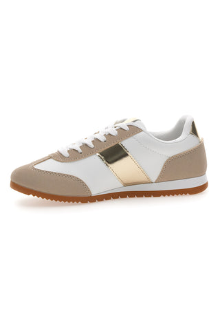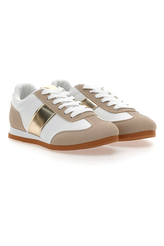 Sneakers Bianche e Beige con Banda Laterale Oro TALEMI 24250